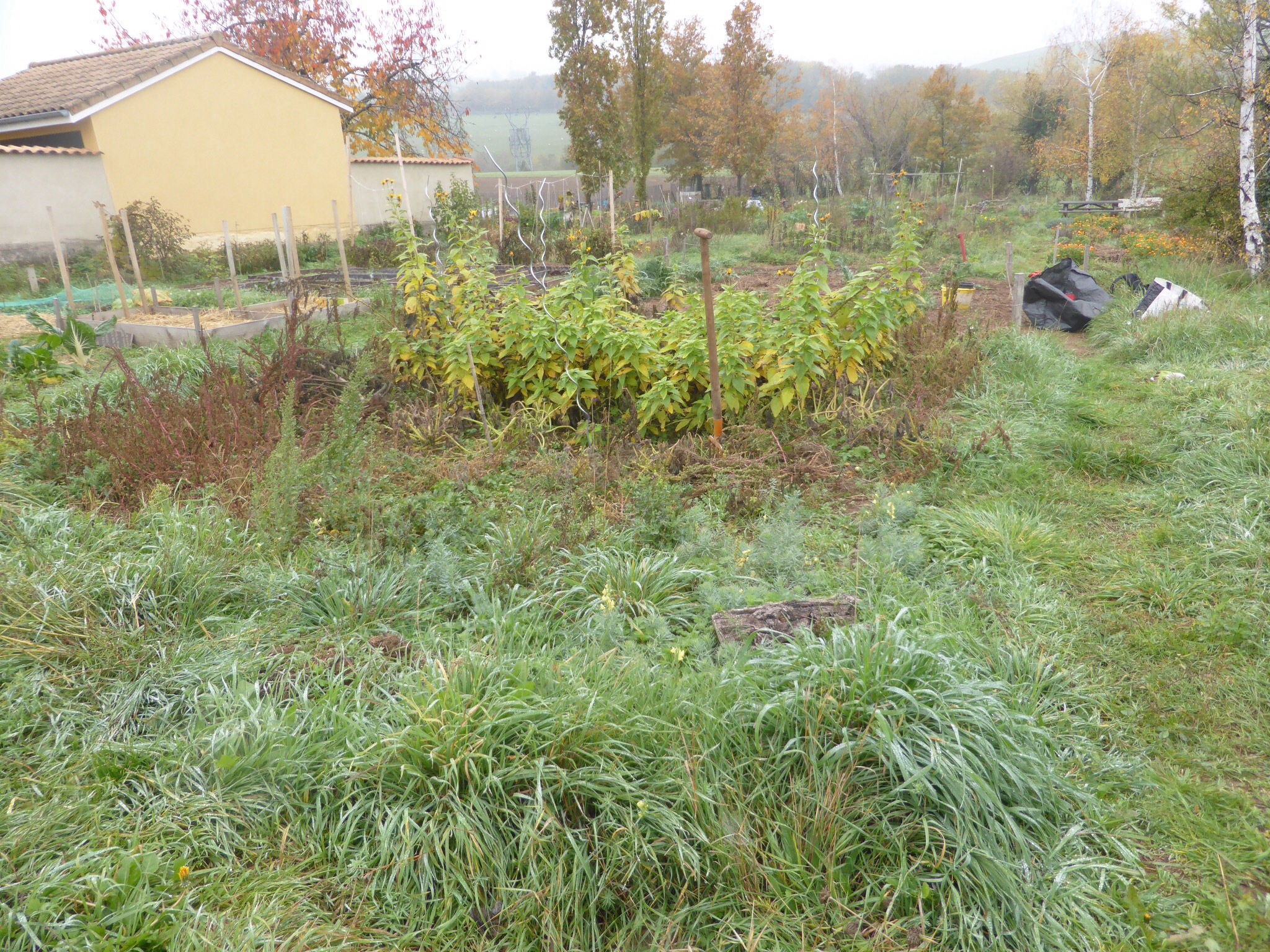 Culture en lasagne : cette parcelle est consacrée à une future culture en lasagne. Premier stade : accumuler des déchets végétaux sur plusieurs épaisseurs. Le prochain stade consistera à recouvrir la parcelle de compost. Les légumes qui y seront cultivés bénéficieront d’un substrat particulièrement riche ainsi que d’un « micro climat » généré par la décomposition des déchets.